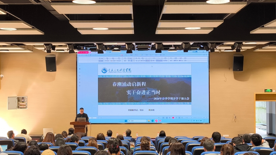 为深入贯彻立德树人根本任务,全面落实校长周光明在春季开学干部大会上的讲话精神,结合学院合并融合后的发展实际,推动学院教学、科研与管理各项工作提质增效,2026年3月4日,经济管理学院于海丰楼112召开2026春季学期第一次教职工大会,系统部署新学期各项工作。校长助理双海军及学院全体教职工共同参会。