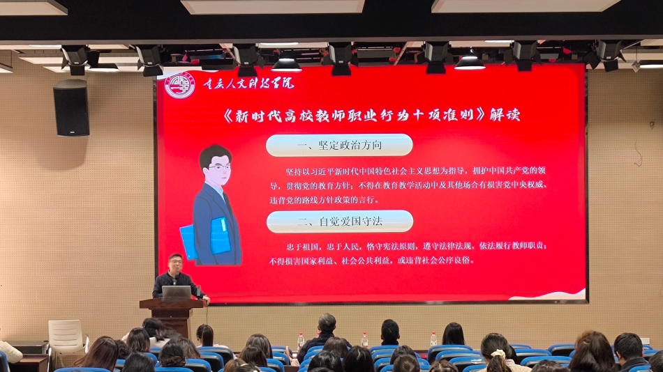 会上,黄代蓥书记首先领学《新时代高校教师职业行为十项准则》,强调师德师风是教师的立身之本,要求全体教职工坚守育人底线,以高尚职业操守践行教育使命,共同维护学院安全稳定。