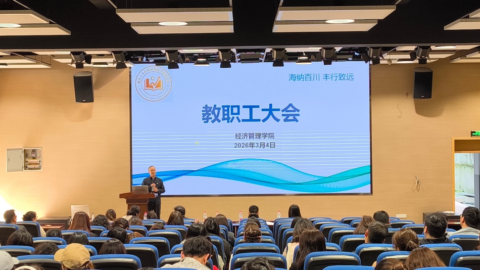 本次大会为学校机构调整后的首次线下教职工大会,进一步统一全院思想、凝聚共识。全院教职工将以此次会议为新起点,坚守立德树人初心,深耕教学科研,强化责任担当,以更务实的作风、更昂扬的状态推动学院各项工作提质增效,不断提升办学质量与育人水平,为经济管理学院高质量发展注入强劲动力。
