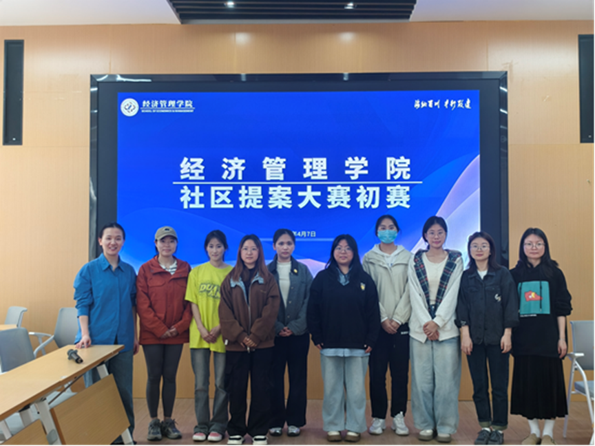 2026年4月7日,经济管理学院在慧园一站式服务大厅成功举办学生社区提案大赛。大赛旨在激发学生主人翁意识,鼓励其立足校园生活实际,运用专业思维与创新智慧,为提升校园治理效能、优化学习生活环境建言献策。学院辅导员李月、邓平珍、王文君、何春花出席活动并担任评委,6支学生团队携精心准备的提案进行了精彩展示与答辩。